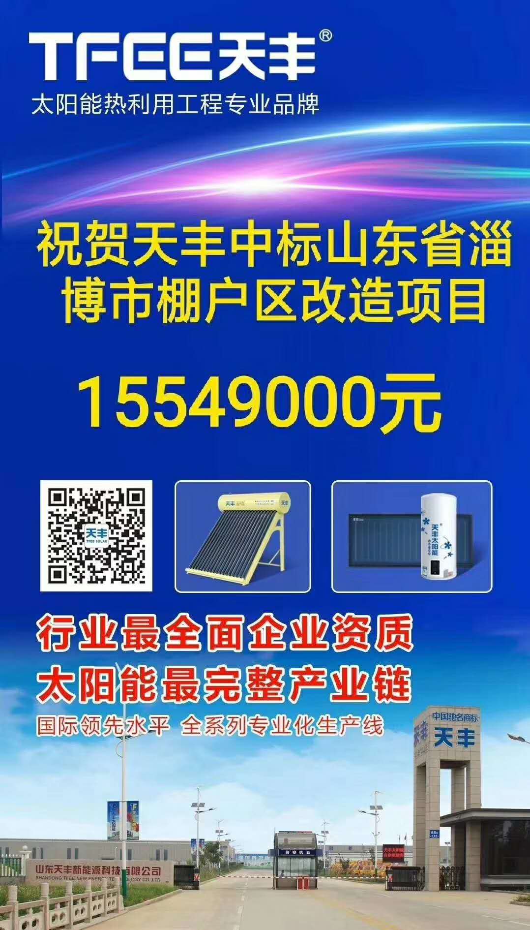 在太陽能熱水器行業(yè)的大河中,天豐人始終保持著“咬定青山不放松”的執(zhí)著,胸懷著“越是艱險越向前”的膽魄。值此國慶佳節(jié)來臨之際,工程部傳來捷報:天豐太陽能中標(biāo)淄博經(jīng)開棚戶區(qū)1500余萬元的改造項目。(慶祝的表情)(捷報照片)