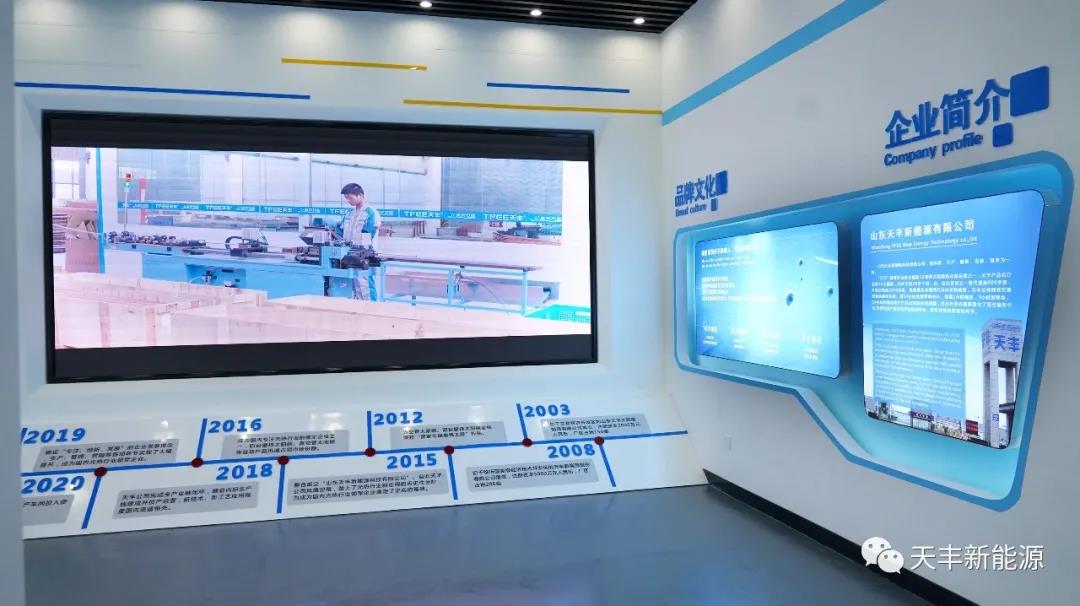 2020年8月,天豐新能源企業(yè)文化展廳正式落成,并將在本月正式啟用,整個展廳設計包括:企業(yè)簡介、品牌文化、發(fā)展歷程、資質榮譽、領導關懷、生產流程、產品類別、場景方案、案例展示、合作伙伴十大方面,從形象、發(fā)展、成就、未來等多個角度為客戶呈現(xiàn)出天豐新能源充盈飽滿的品牌力量,這是天豐新能源精神堡壘的重要組成。