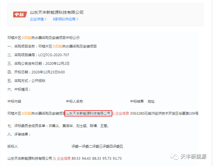 本次成功中標,天豐新能源將全力以赴,發揮施工力量與技術優勢,攻堅克難、保質保量、按期交付。牢記“讓家更節能”的理念,用“客戶口碑”贏取“市場金杯”。